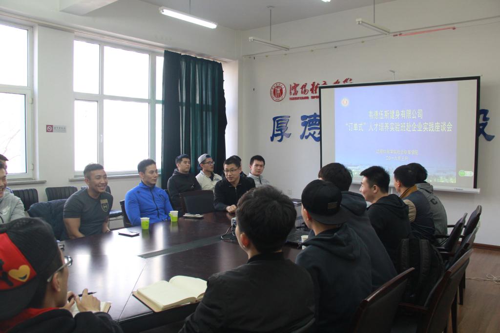 3月30日,在科技楼二楼会议室,社会体育学院组织召开韦德五斯健身体育发展有限公司“订单式”人才培养实验班赴企业实践座谈会。韦德五斯健身体育发展有限公司培训重庆区域总监黄奎喆,沈阳新一城店店长孙鹏、辅导员孙海峰参加,座谈会由社会体育学院校企合作办公室主任高观福主持。