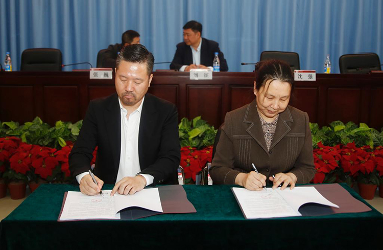 学院院长曹继红与韦德伍斯集团董事长沈强签署协议书。