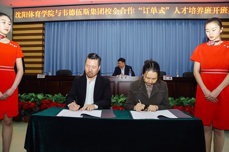 2017年3月22日在沈阳体育学院办公楼一楼报告厅,沈阳体育学院与韦德伍斯集团双方代表,完美举行了校企合作“订单式”人才培养班合作计划签约仪式。