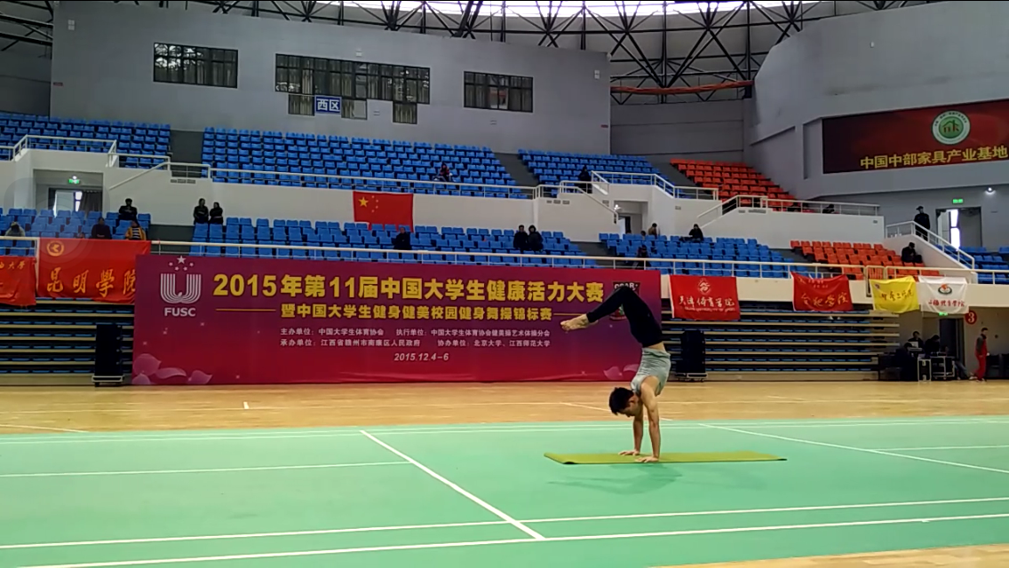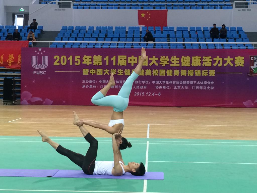 2015年12月4日-6日,由中国大学生体育协会主办的“第11届中国大学生健康活力大赛”在江西赣州举行。由我院8名学生、体育教育学院1名学生和运动训练学院1名学生组成的沈阳体育学院代表队参加了瑜伽项目的比赛。队伍由我院健身运动教研室黄锡祥老师带队,王静宜老师执教。