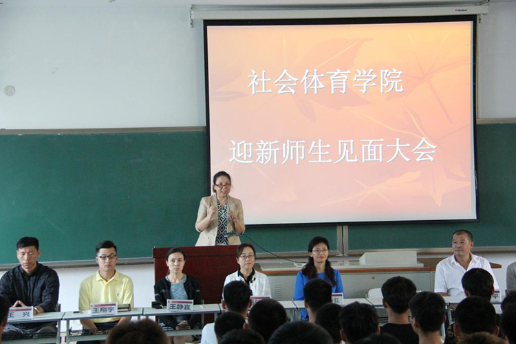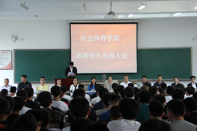 9月21日下午,社会体育学院在教学楼214教室召开2016级新生师生见面大会。社会体育学院院长曹继红、党总支书记樊占平、党总支副书记刘秀红、副院长邹本旭、各教研室主任、支部书记、辅导员以及班导师出席大会。会议由2016级辅导员包健峰主持。