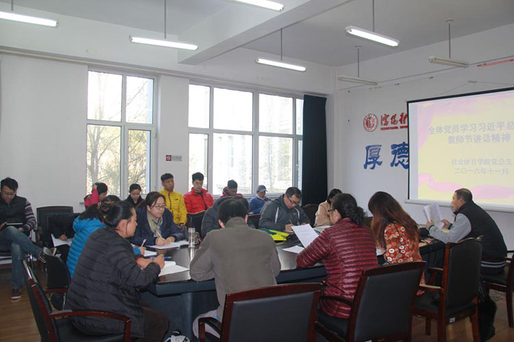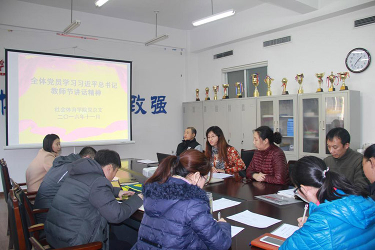 11月2日下午,社会体育学院全体党员在科技楼二楼会议室学习习近平总书记教师节重要讲话精神,会议由刘秀红主持。