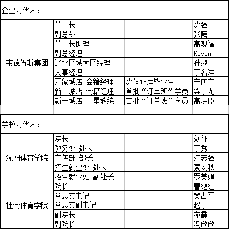 2017年3月22日在沈阳体育学院办公楼一楼报告厅,沈阳体育学院与韦德伍斯集团双方代表,完美举行了校企合作“订单式”人才培养班合作计划签约仪式。